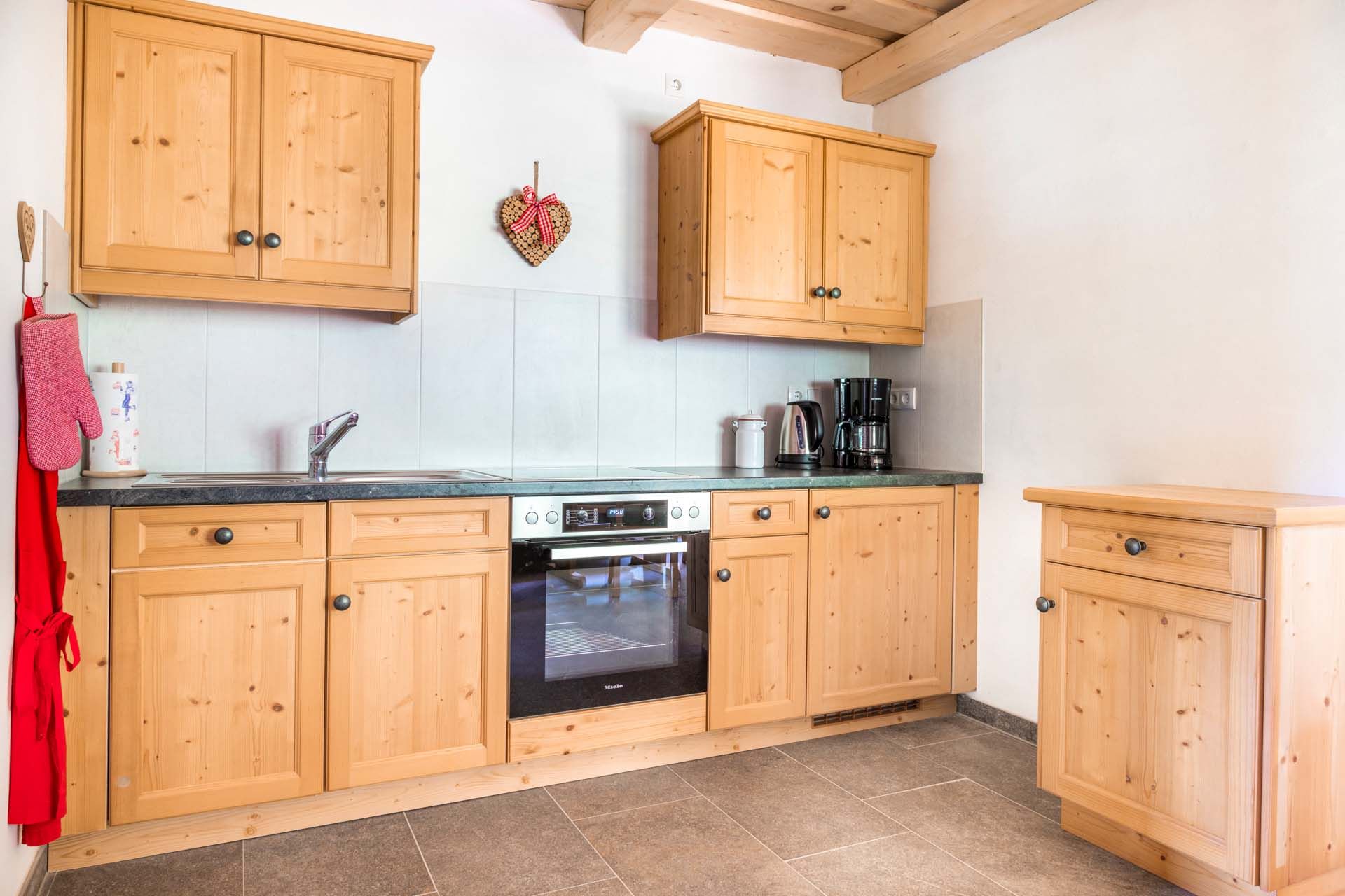 Alle drei Ferienwohnungen verfügen über eine voll ausgestattete Küche mit Spülmaschine, E-Herd, Backofen, Filterkaffeemaschine, Toaster, Wasserkocher sowie ausreichend Geschirr und Besteck. Jede der Ferienunterkunft hat eine gemütliche Couch und einen Fernseher. Bettwäsche und Handtücher werden von uns gestellt.
